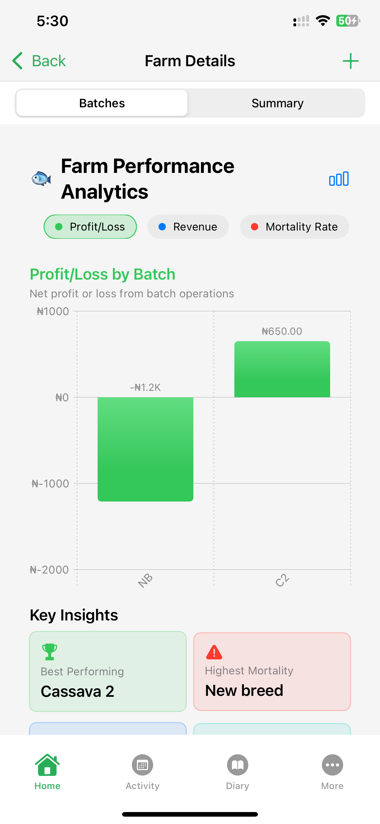 Streamline your farm management with detailed batch profiles and activity tracking to optimize performance and decision-making.